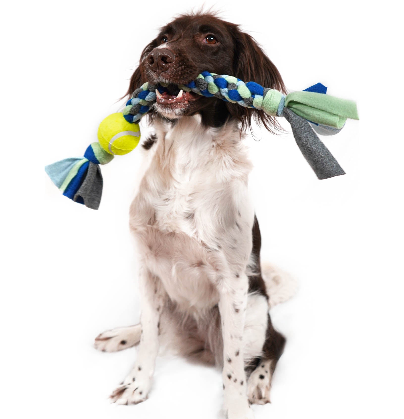 Denna leksak är perfekt för både apportering och kamp, designad för att ge både underhållning och träning för din hund. Leksaken är flätad i mjuk fleece av återvunnen polyester med en tennisboll.