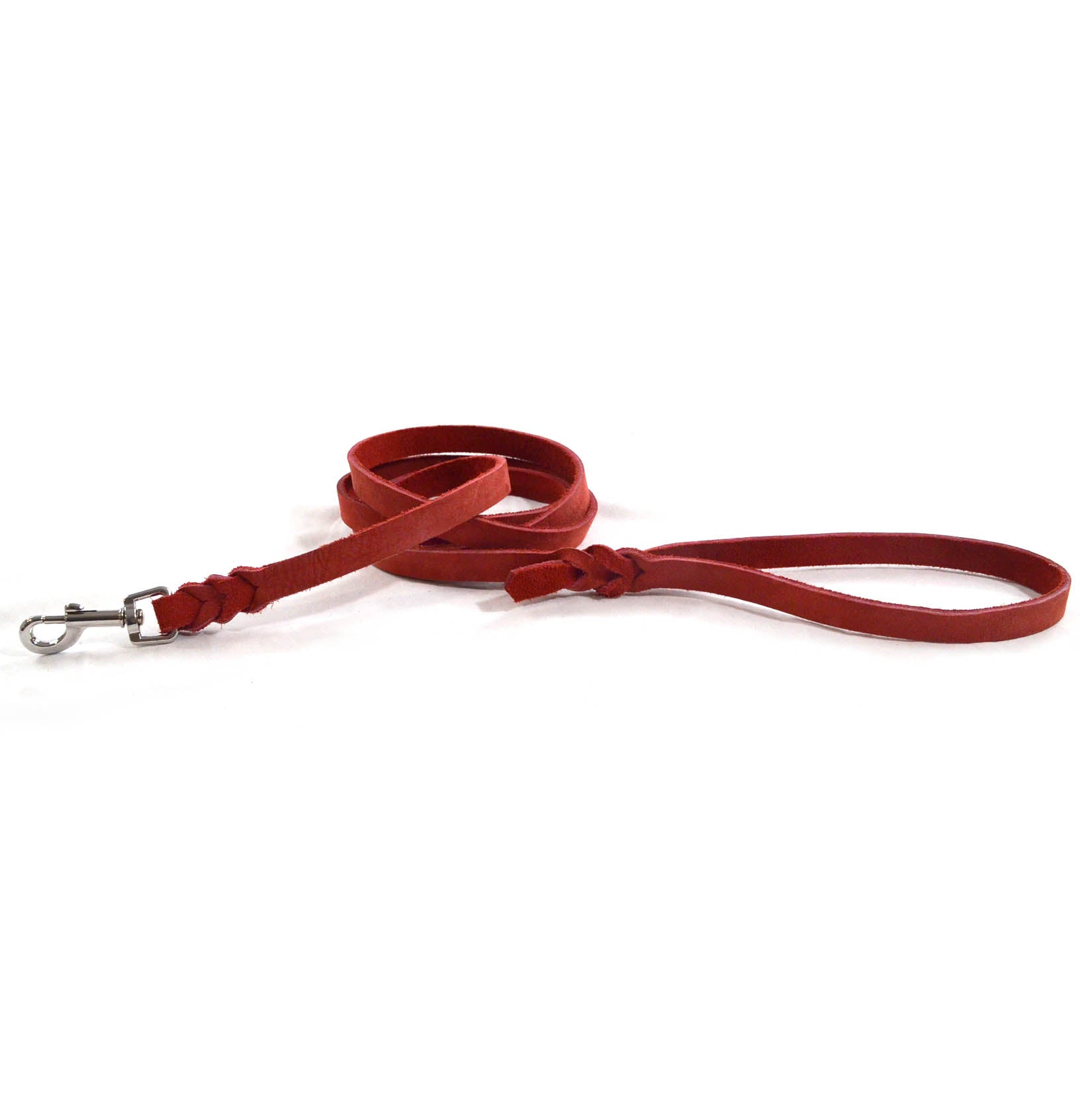 Läderkoppel - Hundkoppel i rött Pull-up Nubuckläder