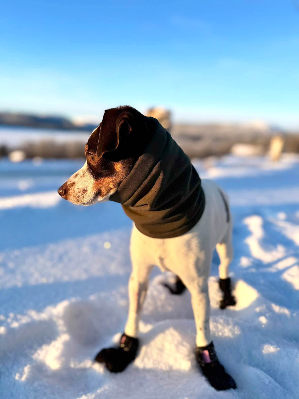 Denna snood, även kallad halsdukstub, är framtagen för hundar som behöver skydd mot kyla, vind och fukt runt hals och nacke utan att begränsa rörelsen. Perfekt för promenader under höst, vinter och ruggiga dagar då extra skydd gör stor skillnad för komforten.